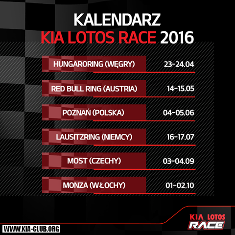 Rozpis KIA LOTUS RACE pre rok 2016