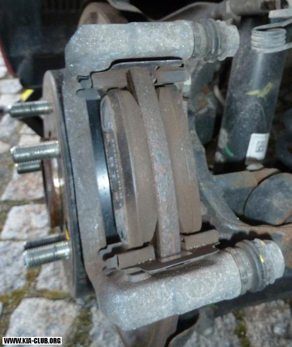 Další postup - vyčištění a namazání stejný s přední brzdou. Destičky byly méně špinavé než přední.
