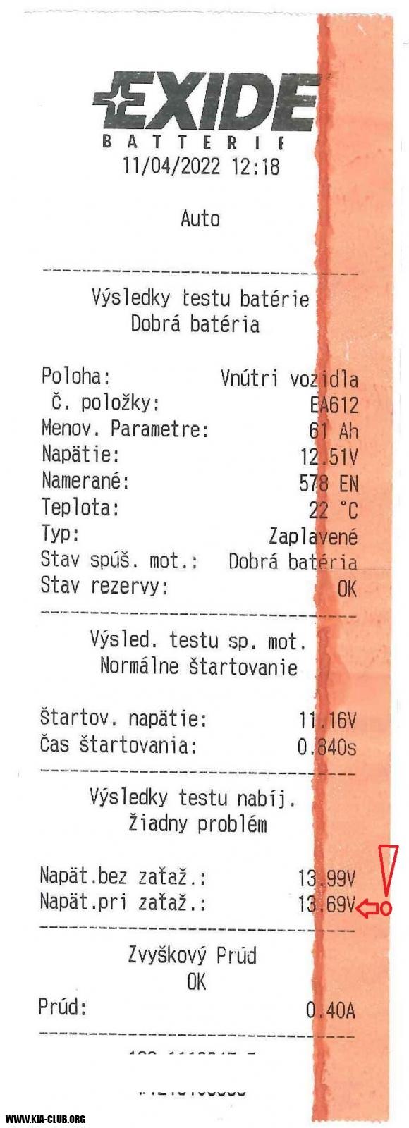 Meranie autobatérie + dobijanie autobatérie (Kia Ceed ED)