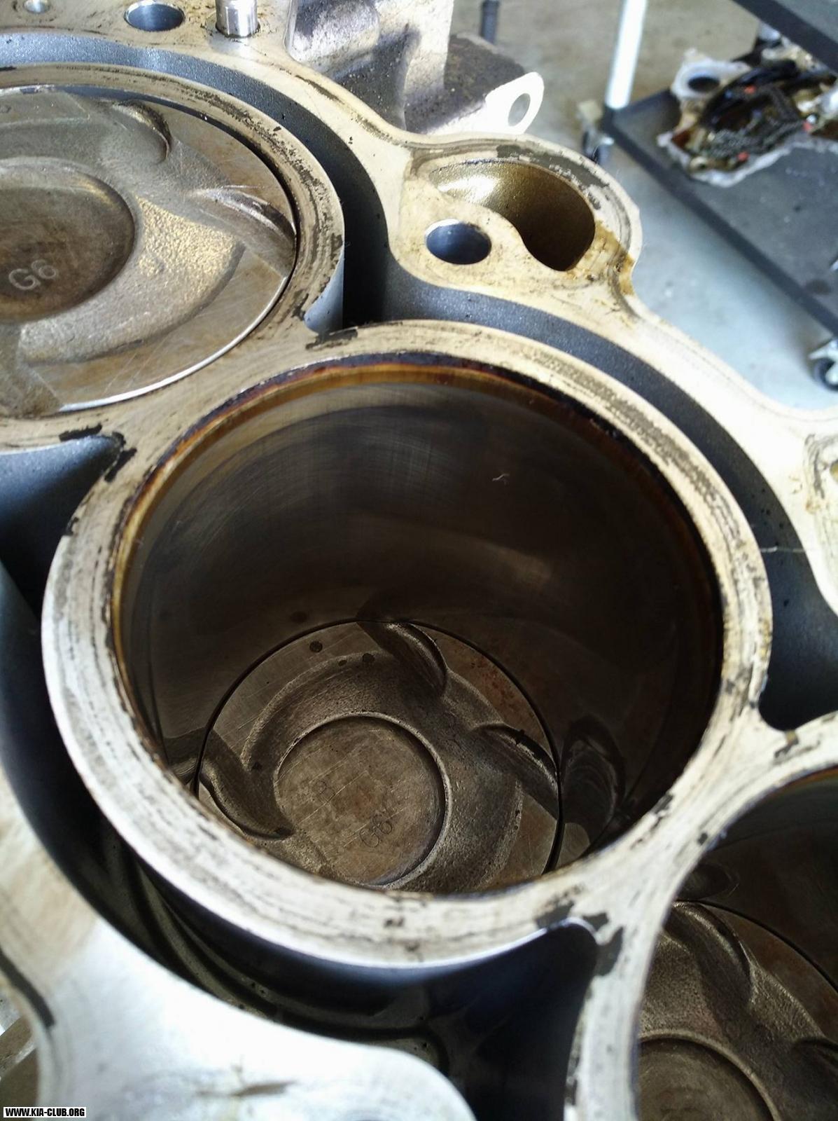 Zakarbonování pístních kroužků u motoru Kia Cee'd 1,6 GDi, najeto 161.891 km (spotřeba oleje cca. 0,5 litru na 1.000 km).