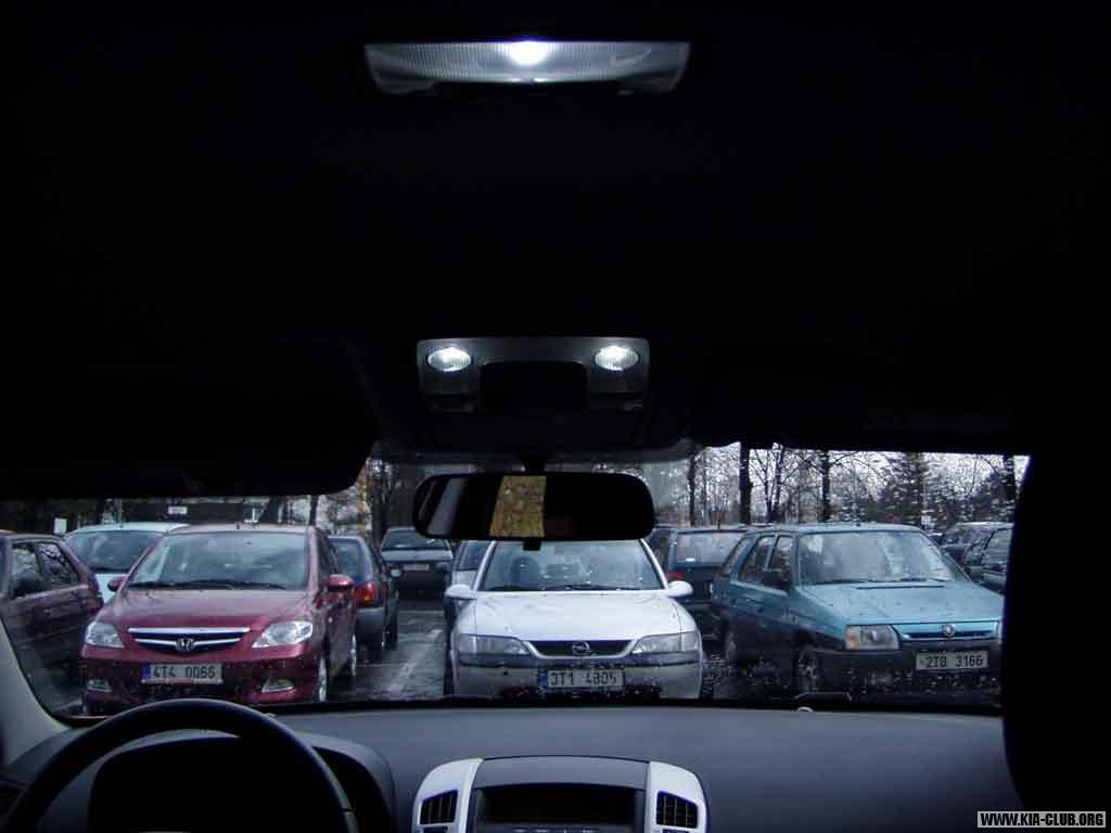 Výměna žárovek stropního interiérového osvětlení za LED diody. V předích lampičkách 2 x 1W, vzadu 1 x 2W.